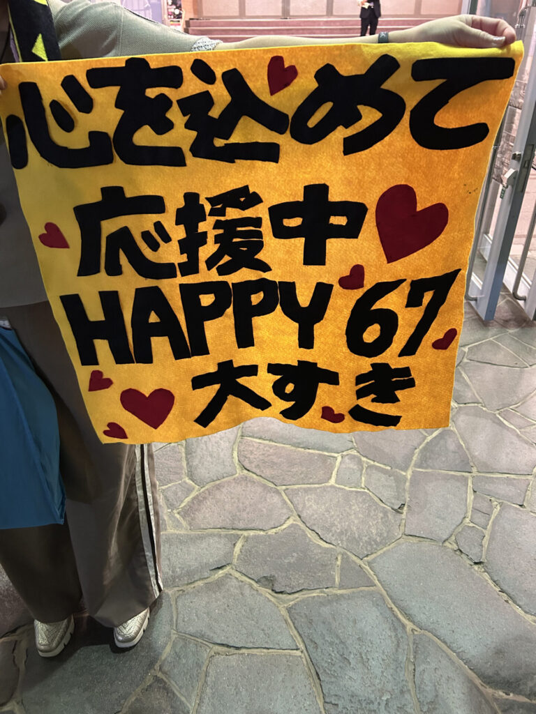 「田園」の後に玉置さんがステージで掲げた、メッセージが書かれたシートの所有者にも遭遇しました。非常に印象的な演出になりました。