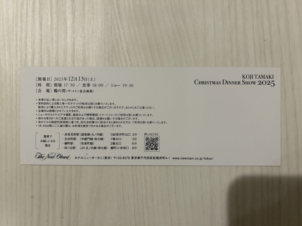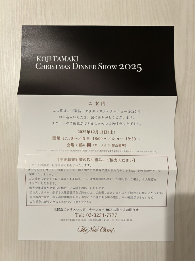先日の12月13日、玉置浩二 クリスマスディナーショー2025@ホテルニューオータニ公演に参加しました。