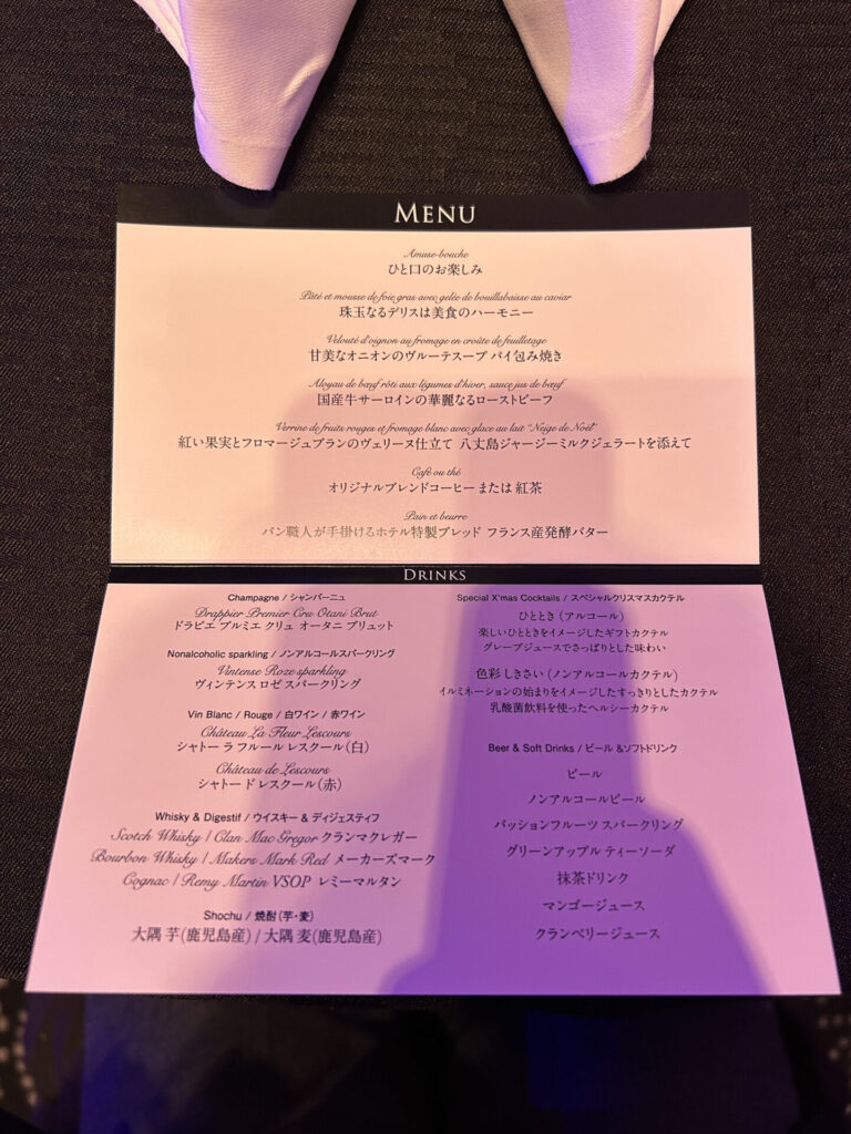 ※本投稿では、会場内の様子をはじめ、提供されたディナーのメニューやショーのセットリスト・演出を記載します。これからディナーショーに参加される方や、ネタバレに抵抗のある方はご注意ください。