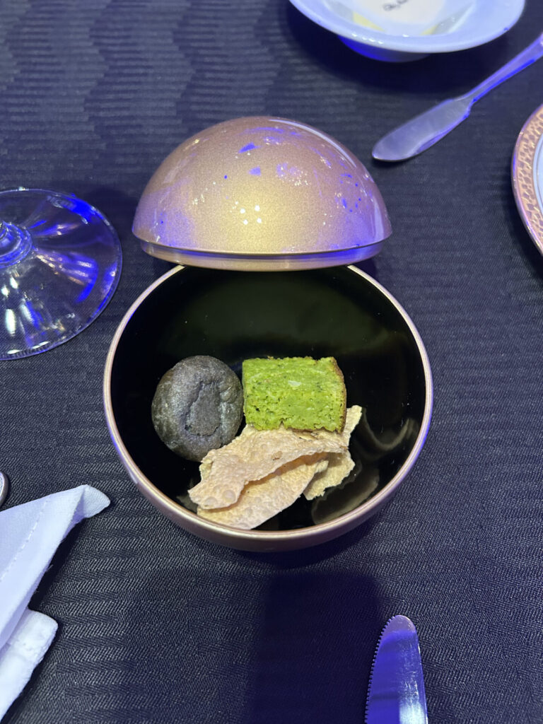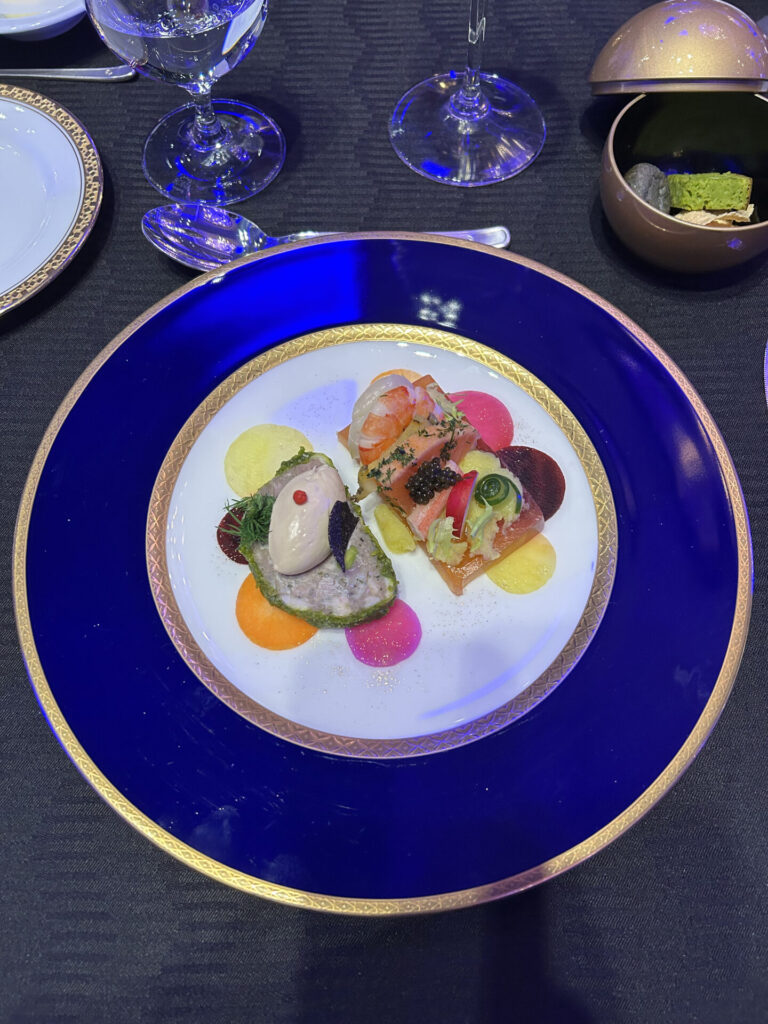 ディナー開始の18時00分、メニュー表に記載の上から順に料理が提供されていきます。