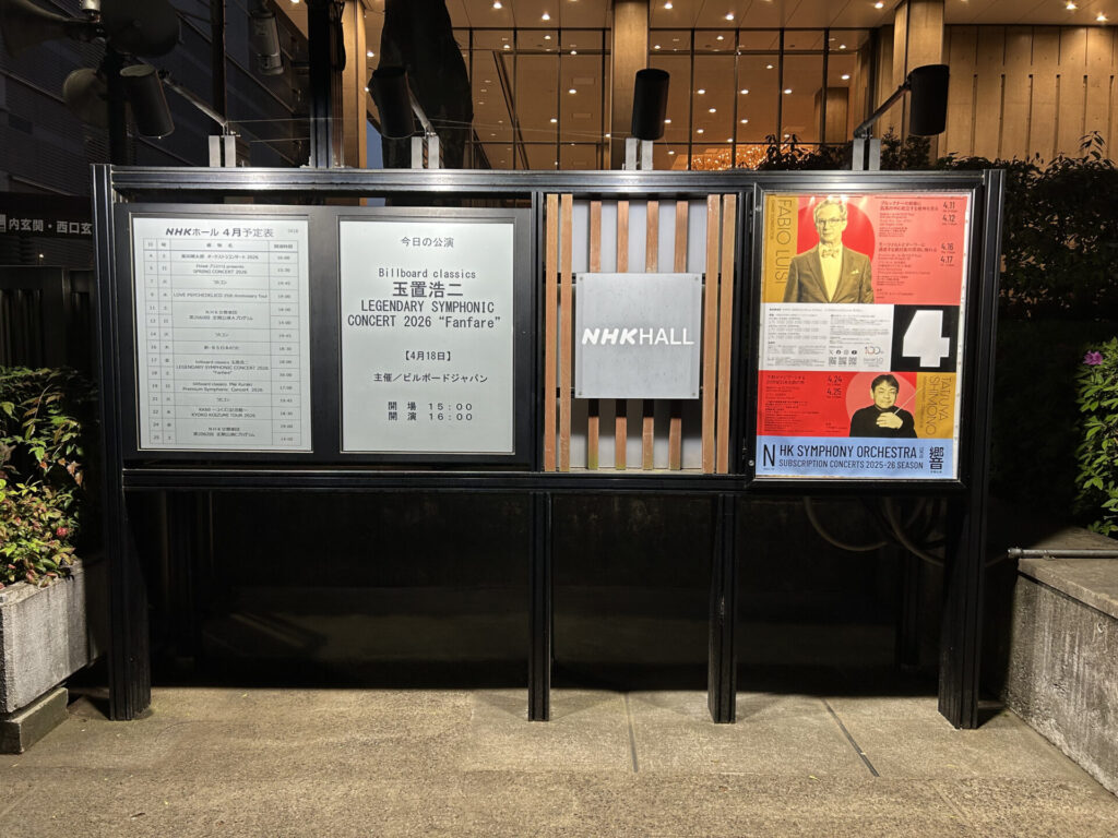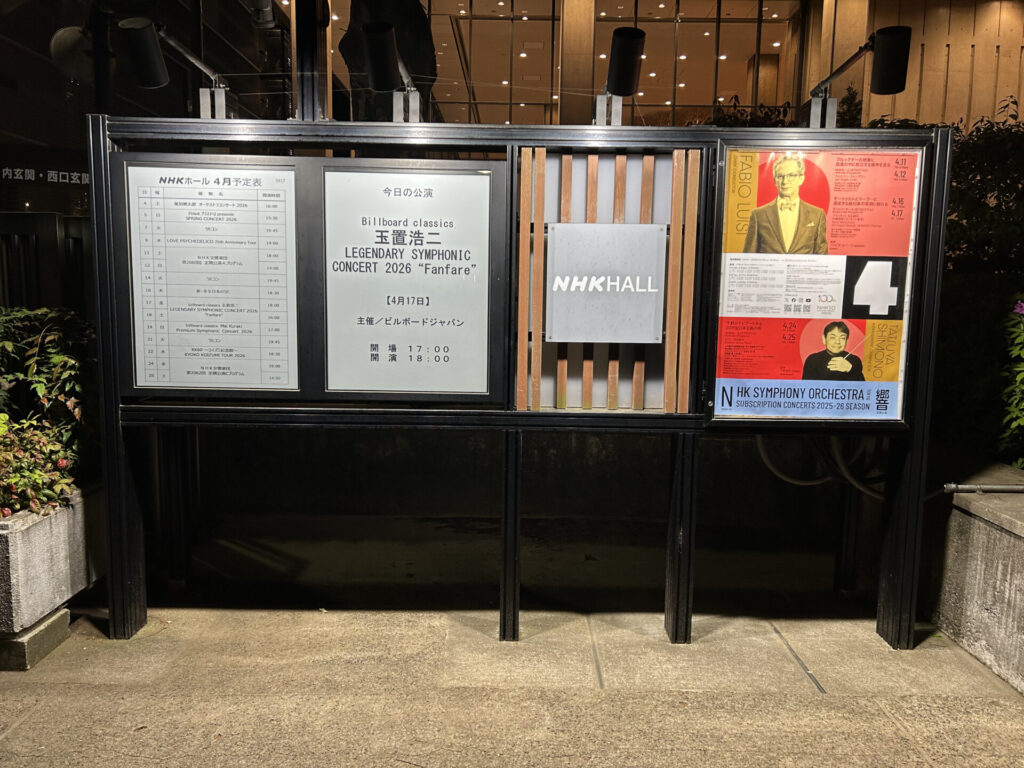 先日の4月17日・18日、billboard classics 玉置浩二 LEGENDARY SYMPHONIC CONCERT 2026 “Fanfare”@NHKホール公演に参加しました。